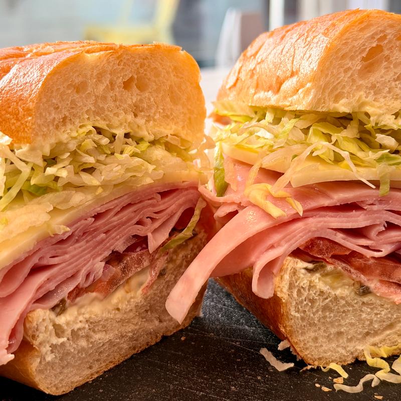 Matyo-Mustard, Tomato, Red Onion, Cooked Ham, Provolone, Lettuce, Red Wine Vinegar